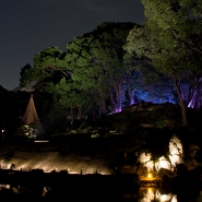 2012年秋の清澄庭園のライトアップでは、2011年秋と同様に、池泉(かつての汐入)周囲の園路に行灯の小さなあかりを配し、地あかりとしている。園路沿って配された行灯の小さなあかりをつむぎ、ひとつの大きな光の景へと繫げていくこと。それは、ひとびとが互いに手を携え合い、大きな力へとなるような願いにも繋がっている。